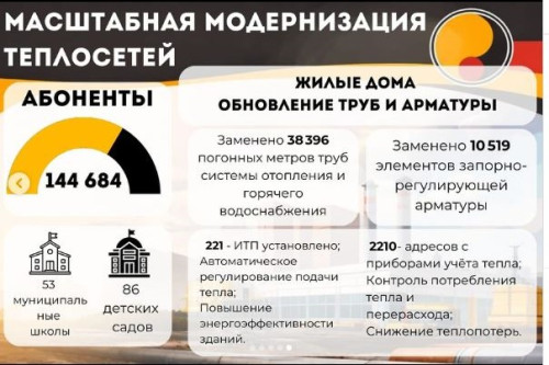 В жилых домах установлены новые индивидуальные тепловые пункты и приборы учёта тепловой энергии, что позволило оптимизировать подачу тепла.